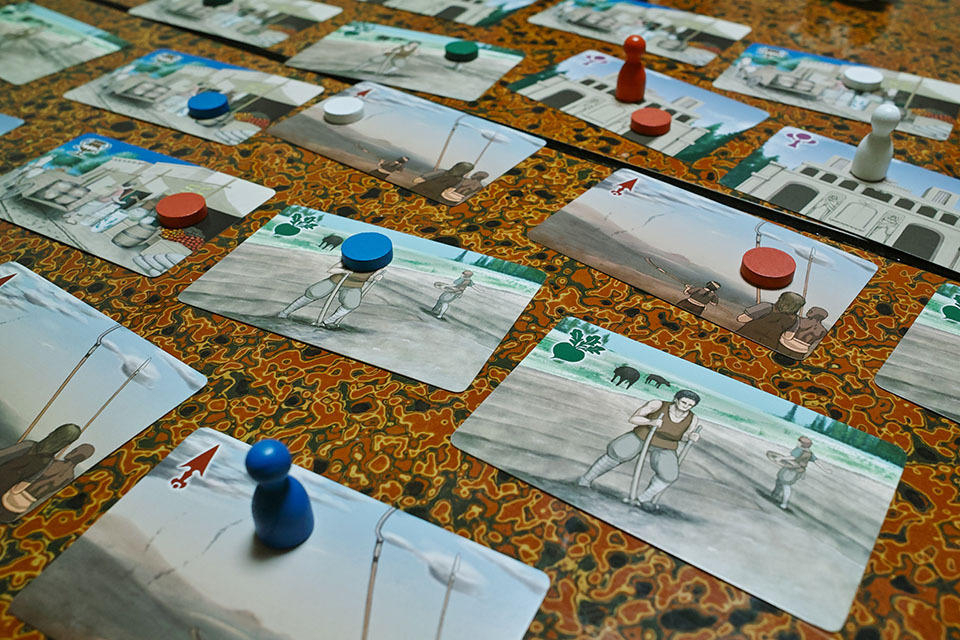 手番チームはカード1枚の表を見て、その答えを予想しつつ取るか取らないかを判断する。