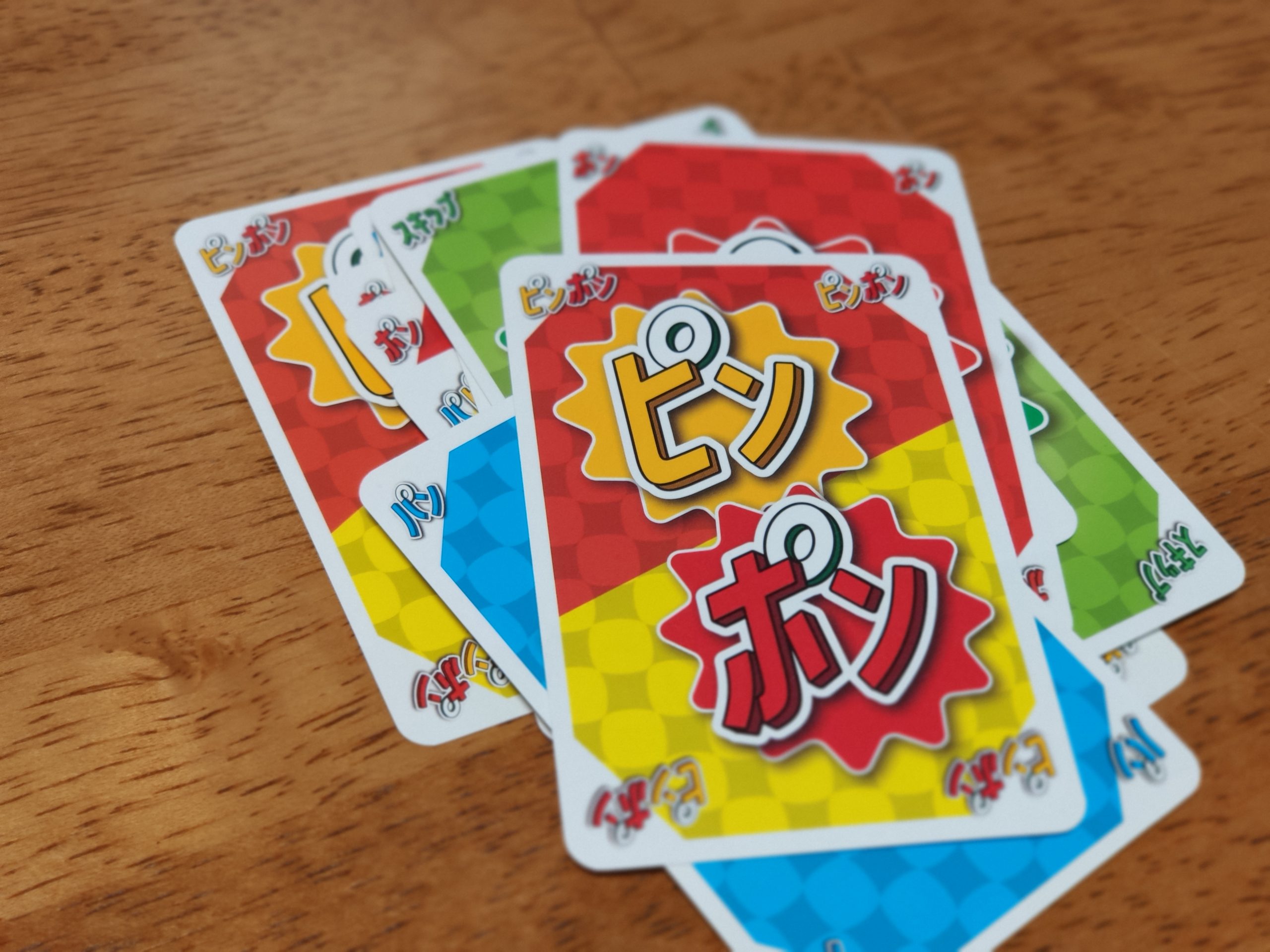 「スキップ」と「パンピンポン(ワイルド)」の効果がシステム的には同じっていうのに気づいた時に、なんだかゲームへの信頼度が下がってしまった・・・(カードを出すときに声を出すルールだと違いは生まれるけど・・・)