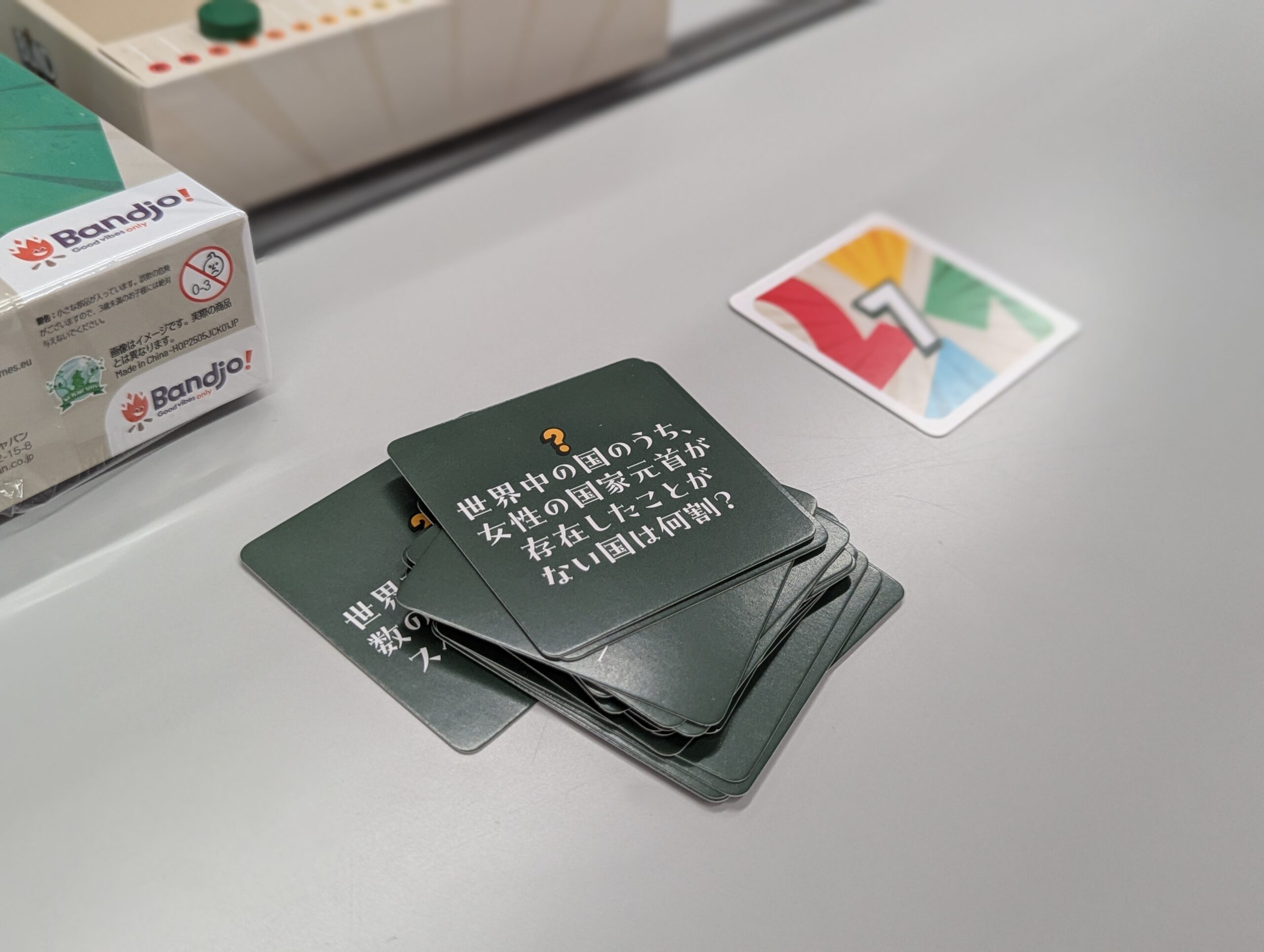 カード表に「数字に関するクイズ」の裏に「答えの数字」が描かれたカードがたくさん。