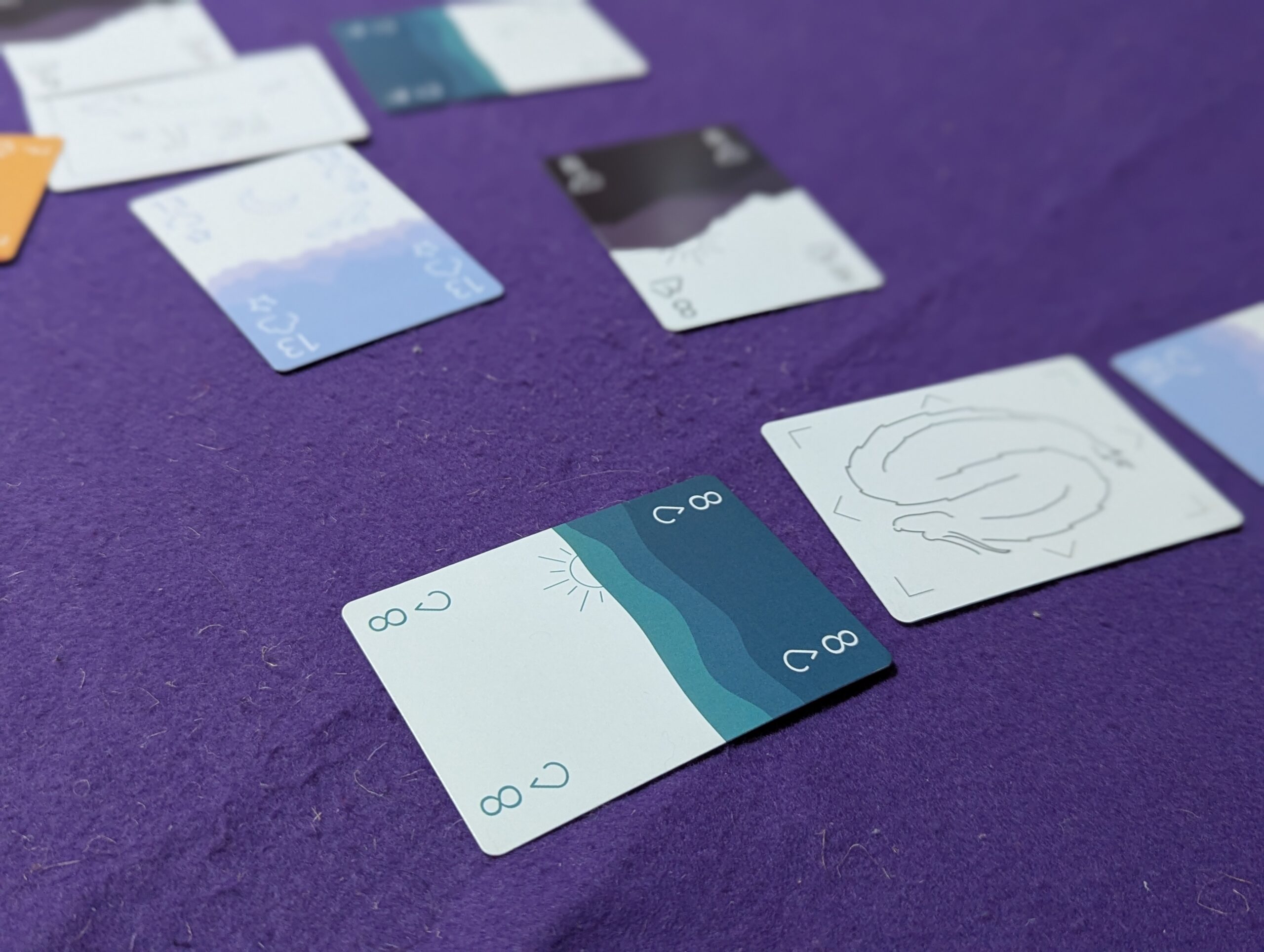 トリックテイキングで、ローランク、ハイランクの価値差によって手札運が強調されることがあるけど、今作では真逆の勝敗判定のトリックを同時進行させることでカードの価値が変化するようになっている。
