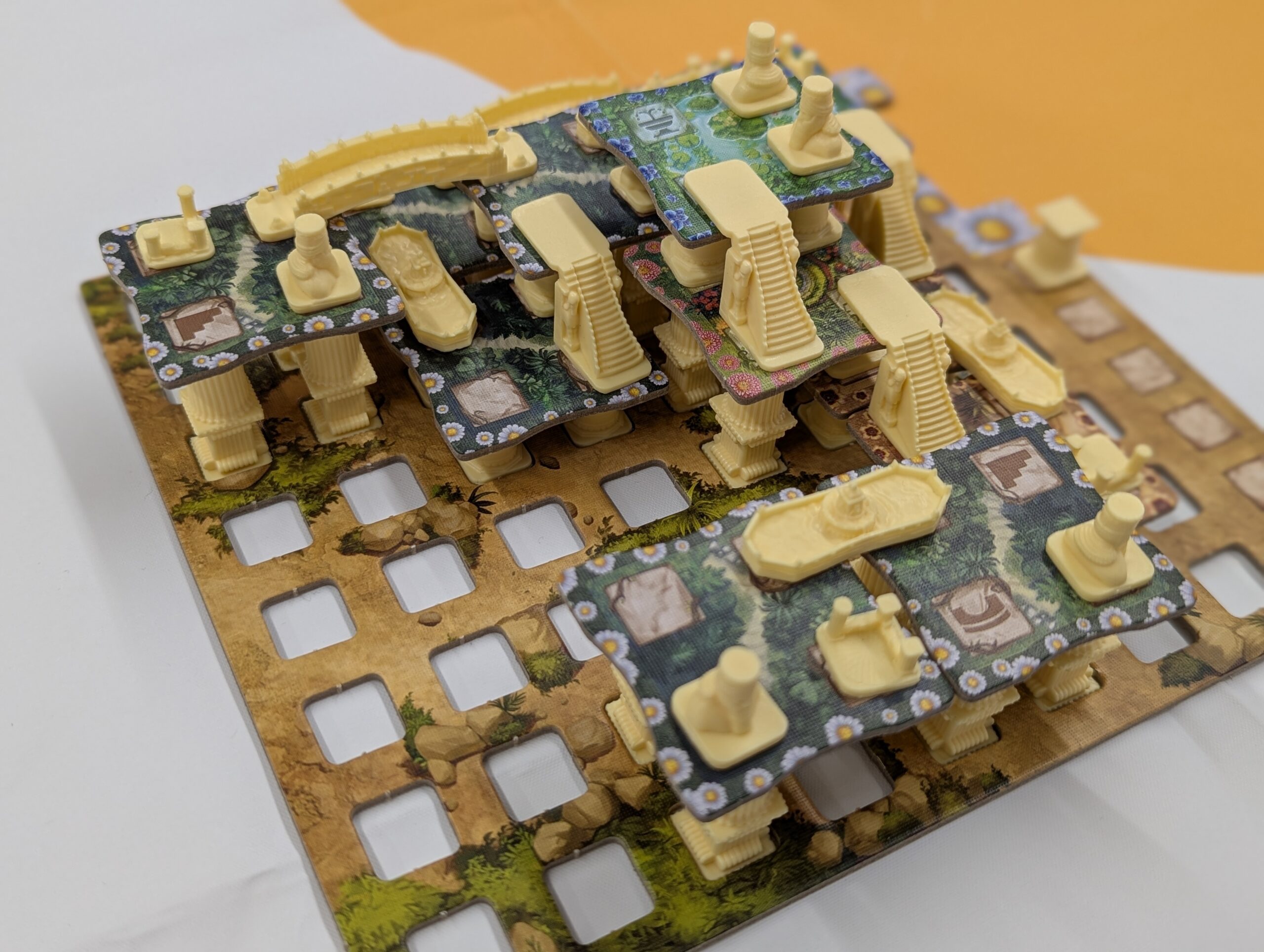 支柱を建てることでより高くにタイルを積み上げることが出来て、より高階層の建造物程得点が高くなる。
