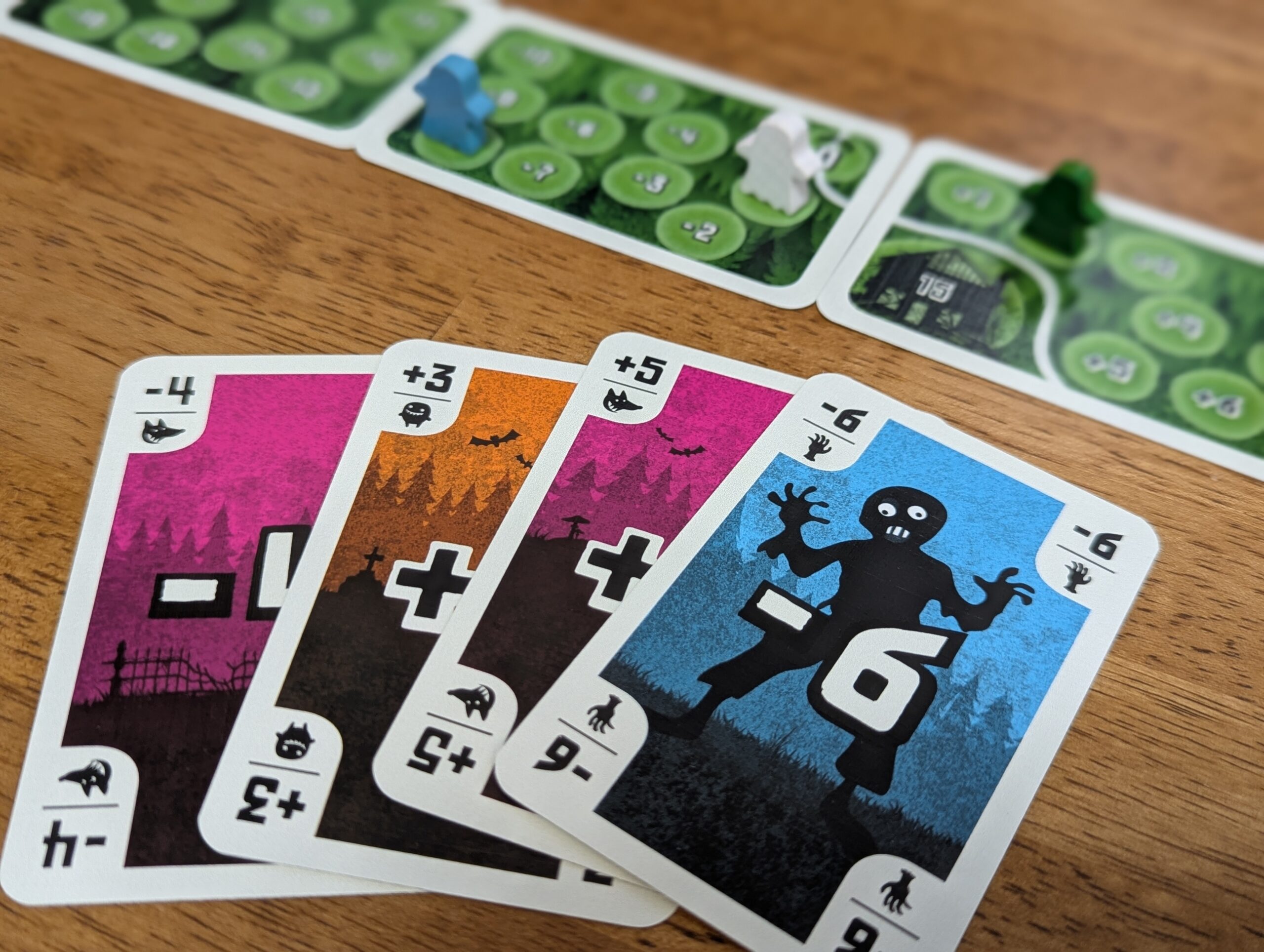 トリックに出た全てのカードが重要で、数字合計だけトラック上の自駒を動かす。