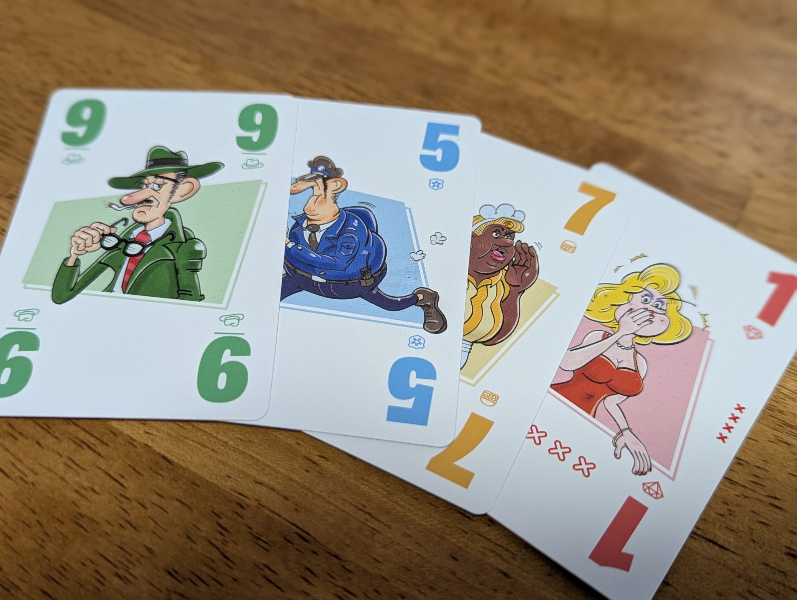 お客が付く前の食材カードは、他プレイヤーに盗まれることがあるので、早めに完成してしまいたいが、そうするとより良いセットを作られて他プレイヤーにお客を奪われてしまうっていうジレンマ。