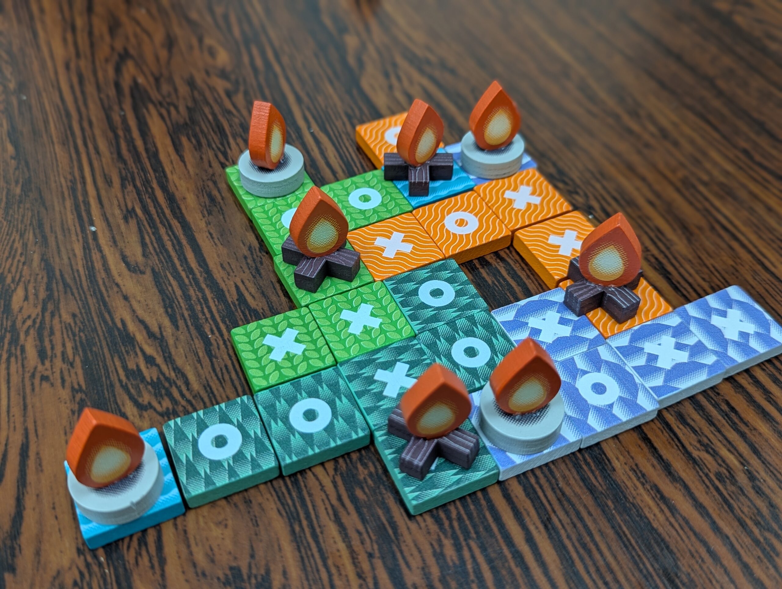 これで三目が完成すると、自分の焚き火コマを配置できる。